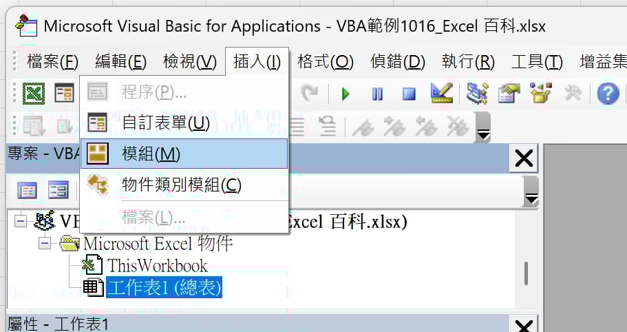 畫面會跳出一個新視窗,那就是我們要寫 VBA 程式的地方。